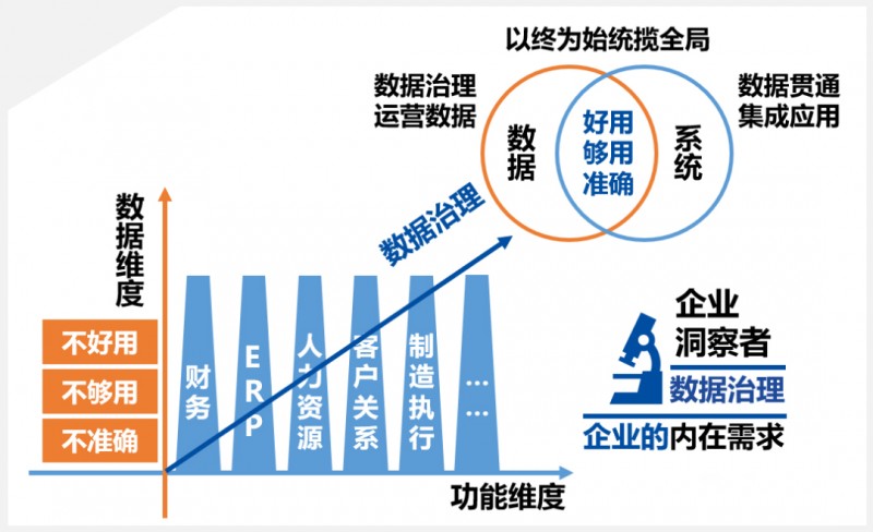 通过有效的数据治理,企业将拥有丰富的、高质量的数据,通过数据可以知道需要知道的和希望知道的一切,通过数据企业变得一览无余,让企业管理者能够成为企业洞察者。